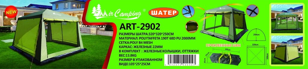 Тент-шатер с москитной сеткой 320x320x250 см, арт. 2902 Mircamping