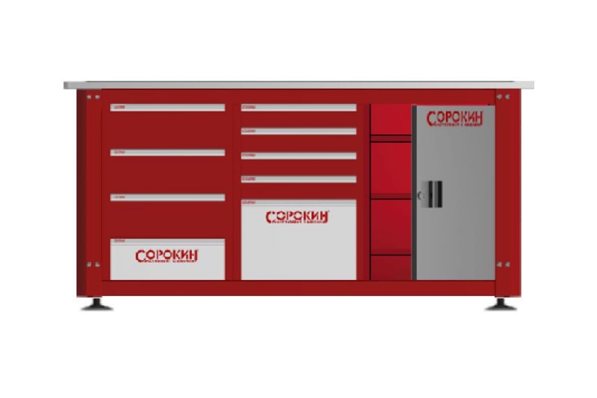 Верстак Сорокин 3.2 используется для организации рабочего места в мастерских. Удобен при сборке, разборке, ремонте узлов и деталей. Трехтумбовый верстак с выдвижными ящиками и полками позволяет хранить инструмент различных размеров. Прочная металлическая конструкция обеспечивает надежность стола. Рабочая поверхность большого размера позволяет работать со сложными составными узлами.