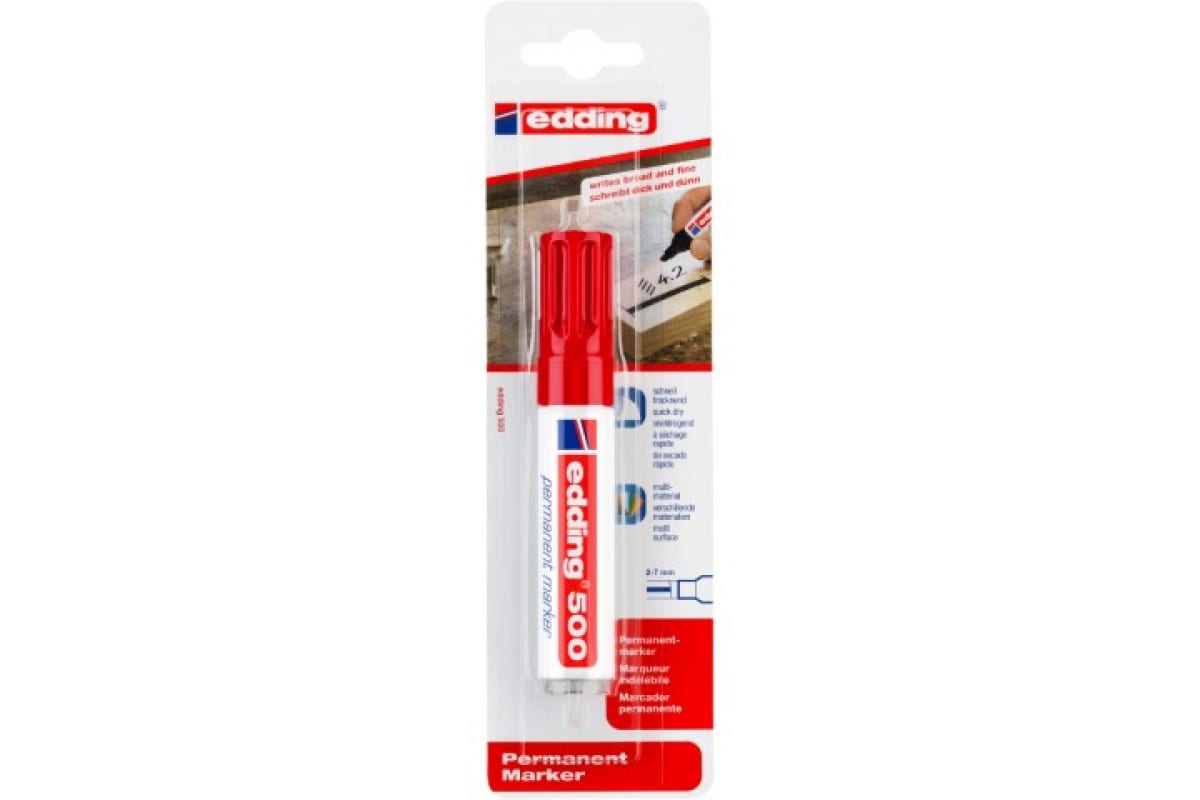Перманентный маркер Edding BL красный 2-7 мм скошенный наконечник, блистер E-500#2 предназначен для письма на различных поверхностях.