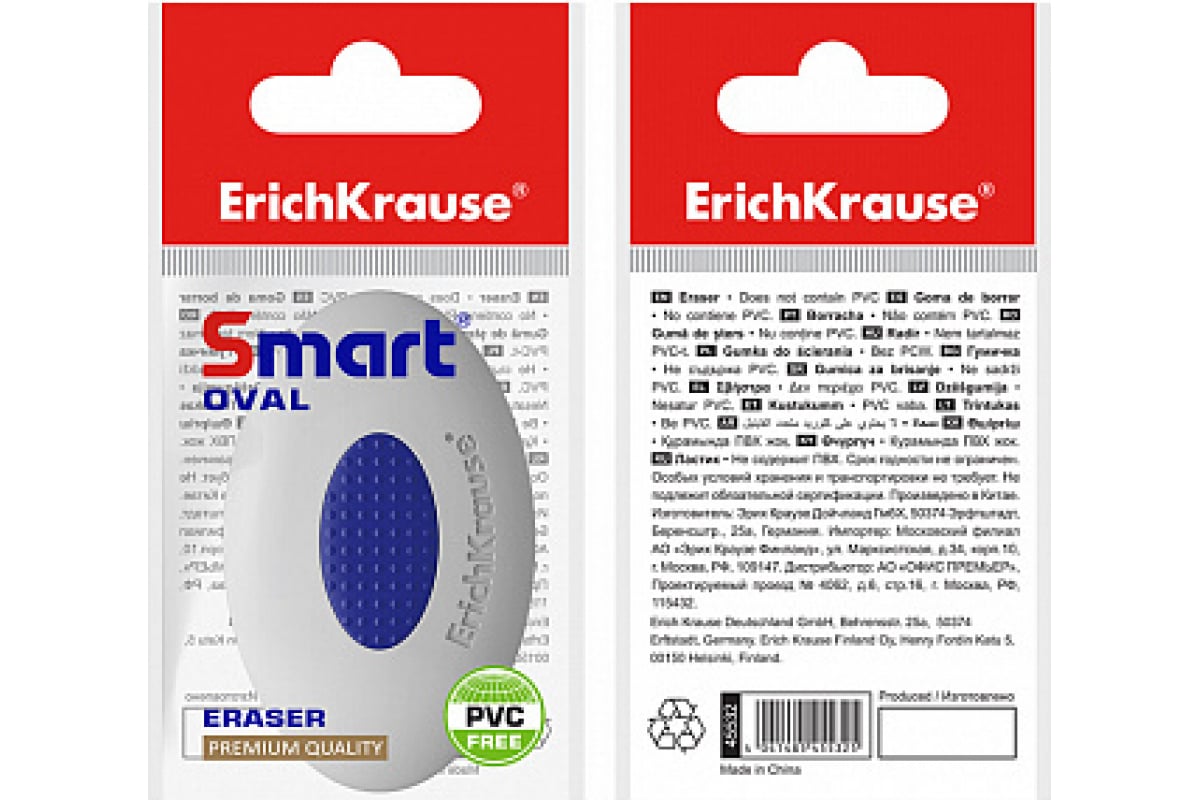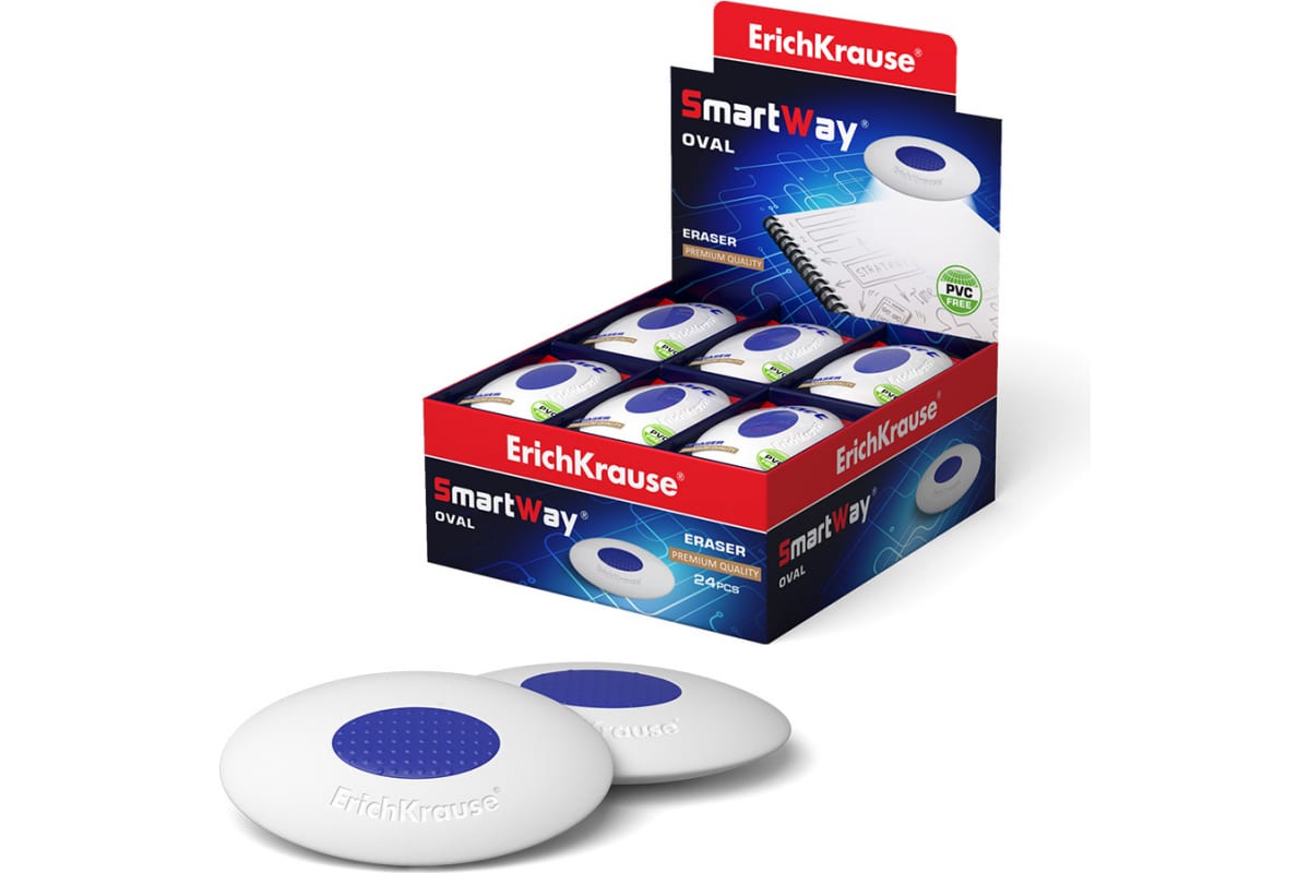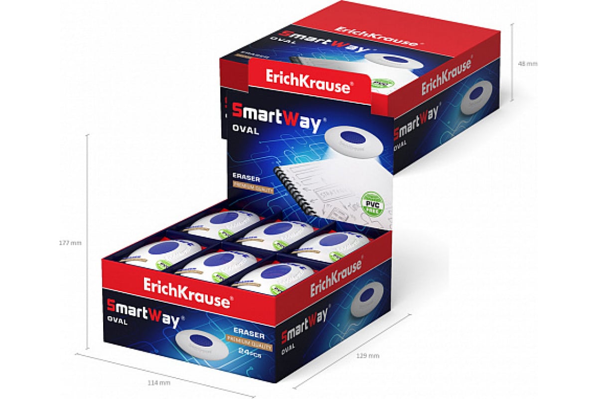 Ластик ErichKrause SmartWay Oval с пластиковым держателем 45532 предназначен для удаления следов карандашей.