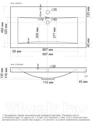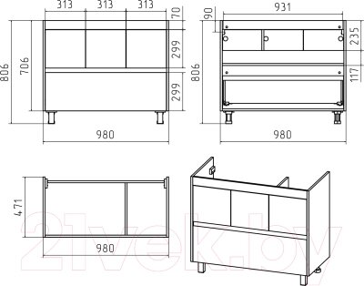 Тумба с умывальником Misty Алиса 100 / Э-Али01100-0112Я + 4627173210331