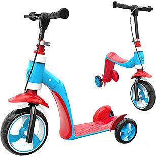 Детский, материал рамы - пластик, материал платформы - пластик, количество колес - 3, передний тормоз, нагрузка до 30 кг.