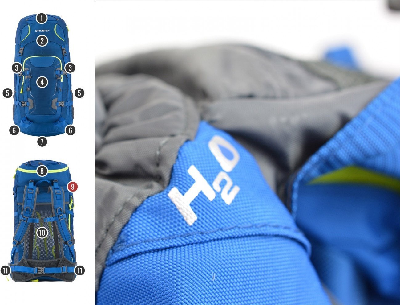 Hickor - полиэстер снаружи обеспечивает прочность полиуретан (PU) внутри обеспечивает водонепроницаемость.420D Нейлон, 600D полиэстер