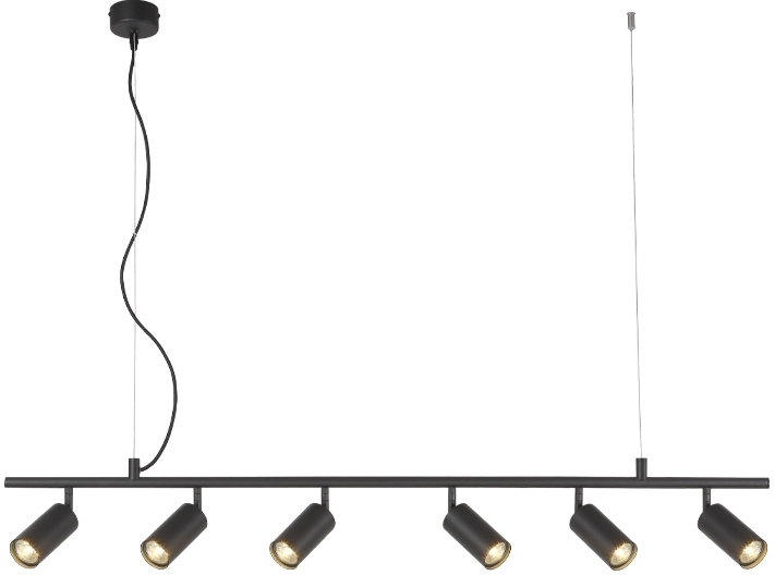 Подвесной светильник CLT 015 CLT 015C6 L1200 BL от испанской фабрики Crystal Lux украсит гостиную, кухню, зону над обеденным столом, кабинет, зону над кухонным островом, офис в современном стиле. Материал — металл, цвет черный. 6 плафонов из металла с цоколем 6xGU10 и мощностью 300W освещают площадь до 21 кв. м. Питание от сети 220V. Технические особенности: доступно подключение к диммеру, регулировка высоты. Устанавливается на пластину. Габариты: длина — 120 см, ширина — 5,6 см, высота — 150 см. Заказывайте Crystal Lux CLT 015C6 L1200 BL по лучшей цене с быстрой доставкой на Lu.ru!