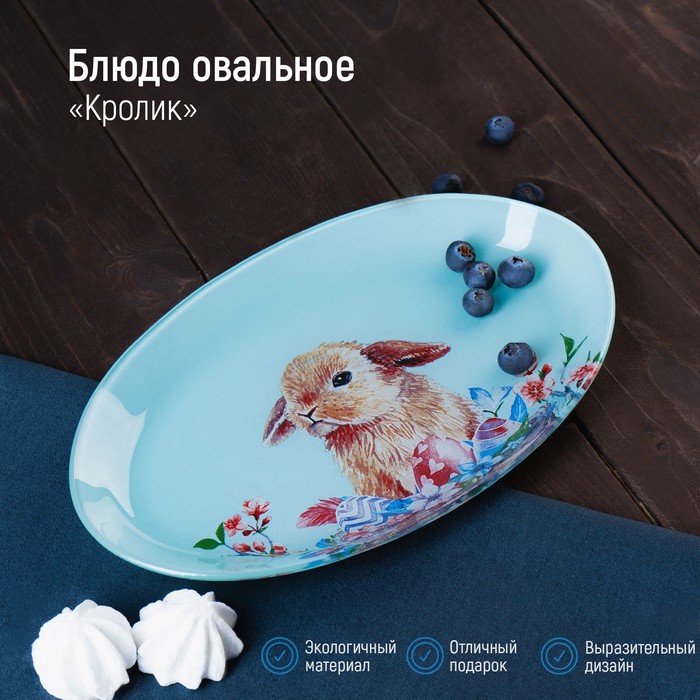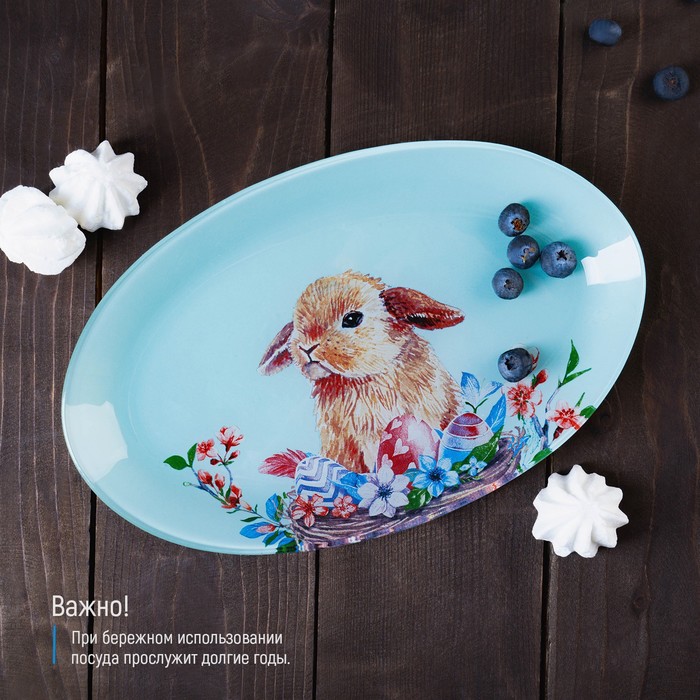 Блюдо овальное 24,5х15см Доляна Кролик пасхальный 5252291