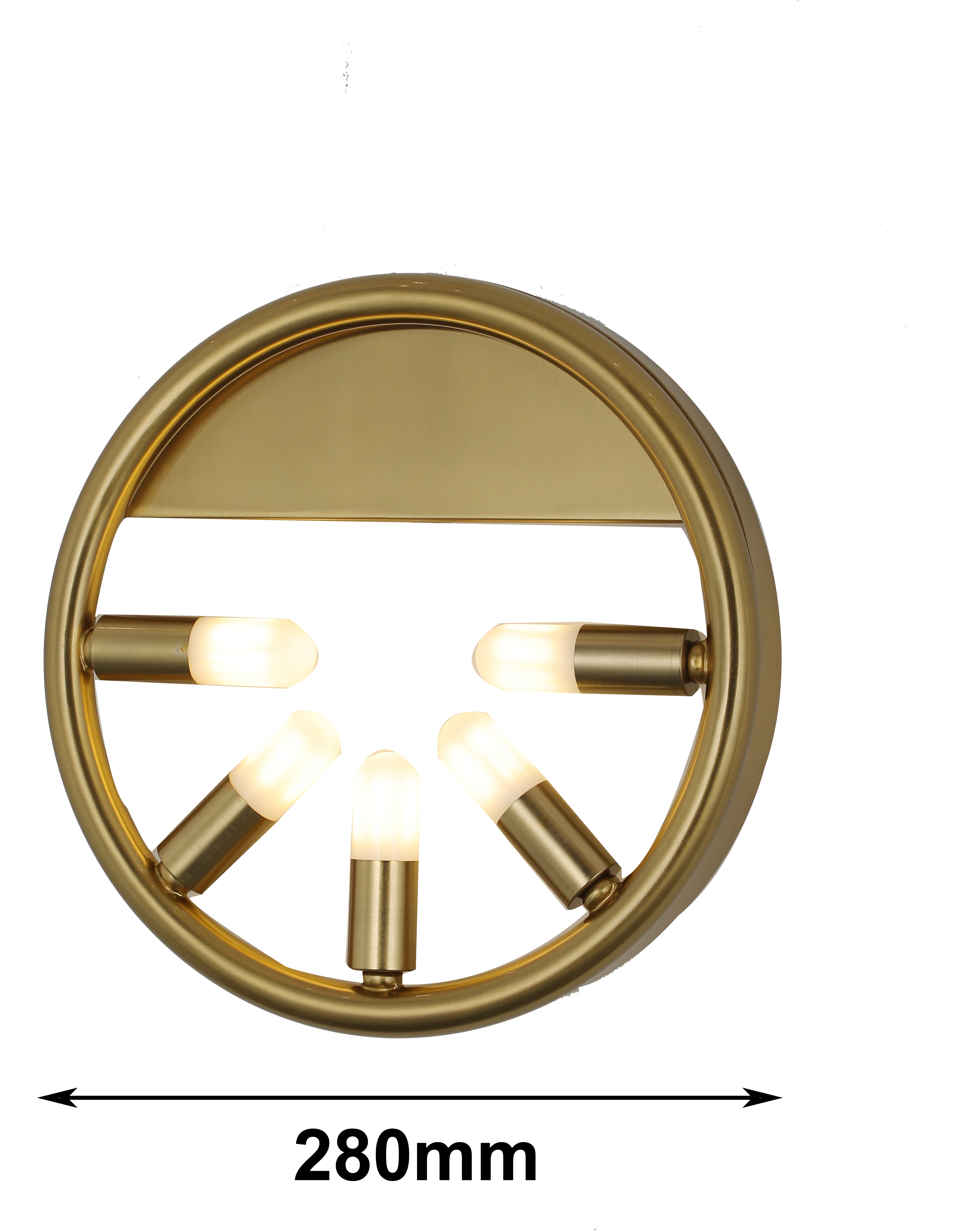 Бра с кольцом Sparkle 2981-5W от немецкой фабрики Favourite украсит гостиную, прихожую и коридор, холл, кабинет, офис в стиле модерн. Материал — металл, цвет латунь. 5 плафонов из стекла с цоколем 5xG9 и мощностью 200W освещают площадь до 14 кв. м. Питание от сети 220V. Технические особенности: доступно подключение к диммеру. Устанавливается на пластину. Габариты: ширина — 28 см, высота — 28 см, диаметр — 9 см. Заказывайте Favourite 2981-5W по лучшей цене с быстрой доставкой на Lu.ru!