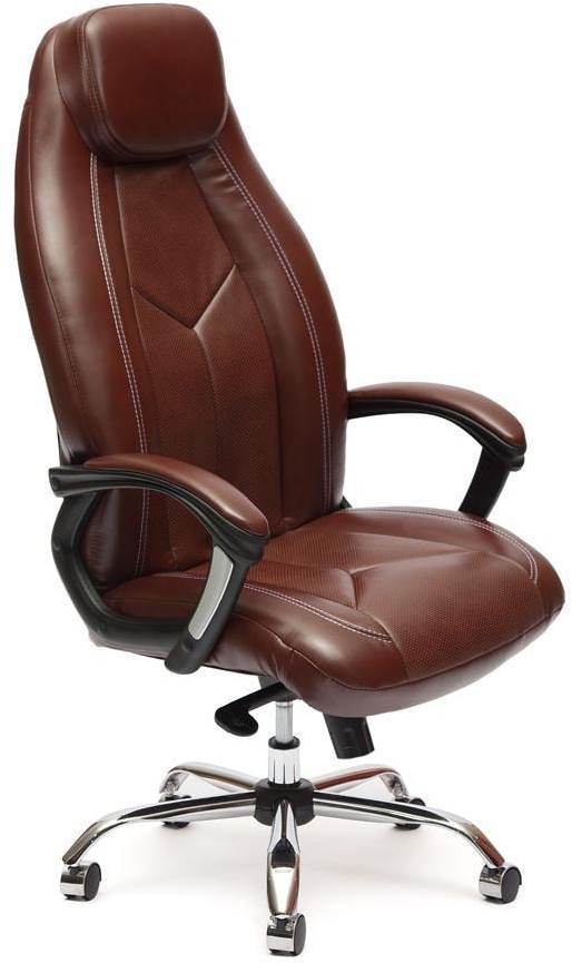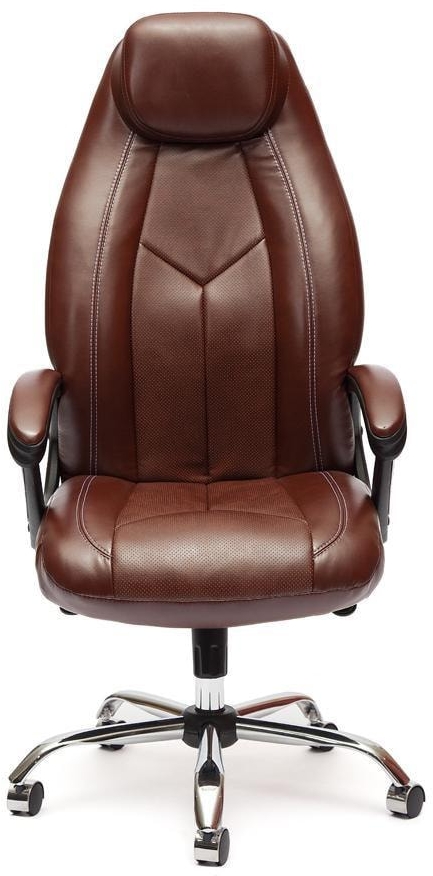 Кресло BOSS люкс (хром) коричневый/коричневый перфорированный (кож/зам)