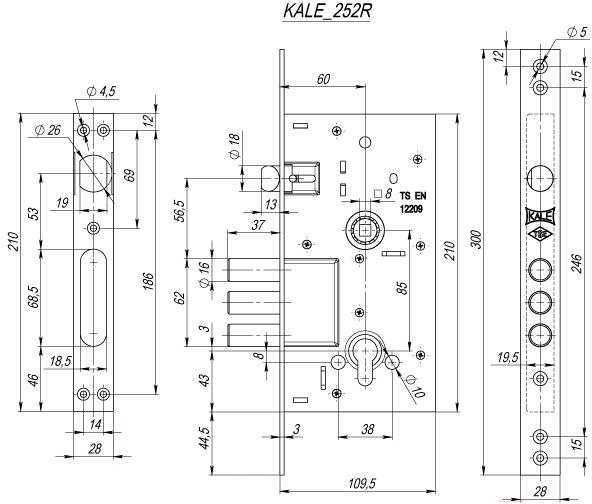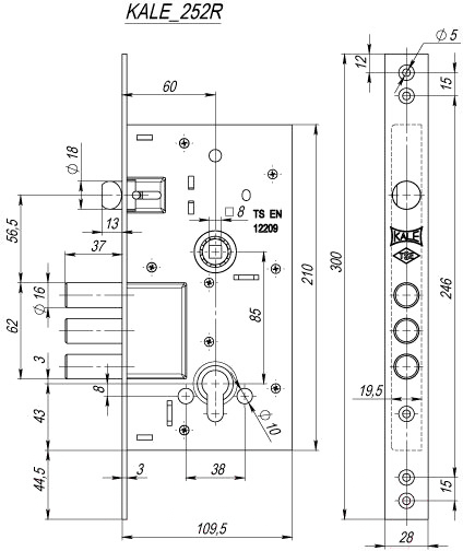 Замок врезной Kale 252 R CR PB / 252R0000078