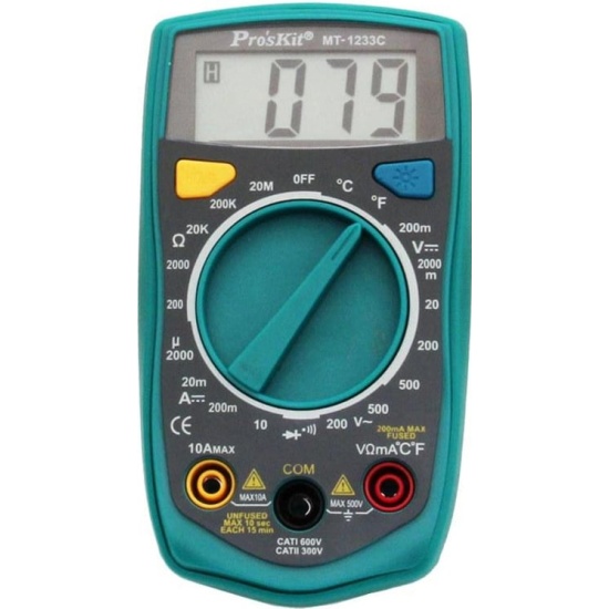 Мультиметр цифровой Pro'sKit MT-1233C (ручной выбор, подсветка, измерение температуры) Proskit MT-1233C