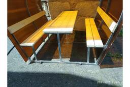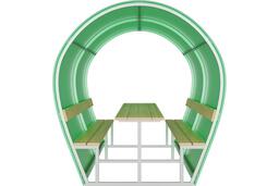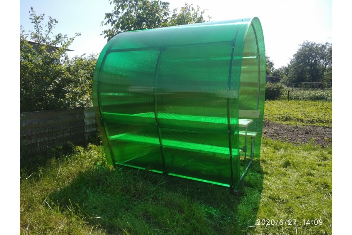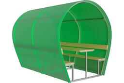 Беседка АКТИВАГРО.РФ Радужная 2 м 056 в виде дачного комплекта из двух параллельных скамеек, в центре расположен стол, над лавочками и столом удобный навес из поликарбоната. Данная беседка обладает компактными размерами и легким прочным оцинкованным каркасом, отличается хорошей вместительностью. Подойдет для семьи с небольшим дачным участком. Вмещает 6-8 человек.