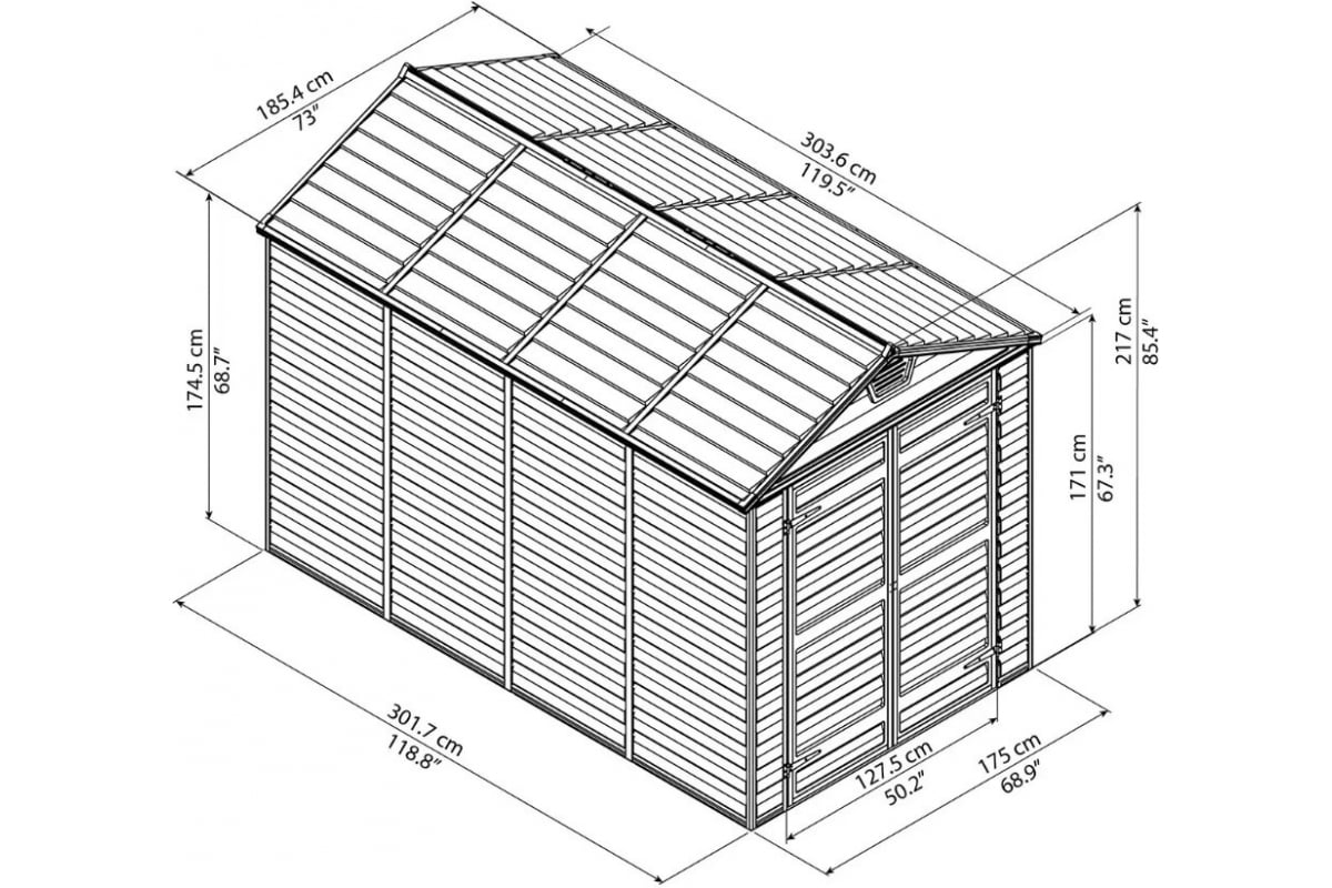 Хозблок Palram SKYLIGHT 702920 эффективно защитит ваше снаряжение от неблагоприятных погодных условий. Подходит для установки на территории загородного дома, дачи.