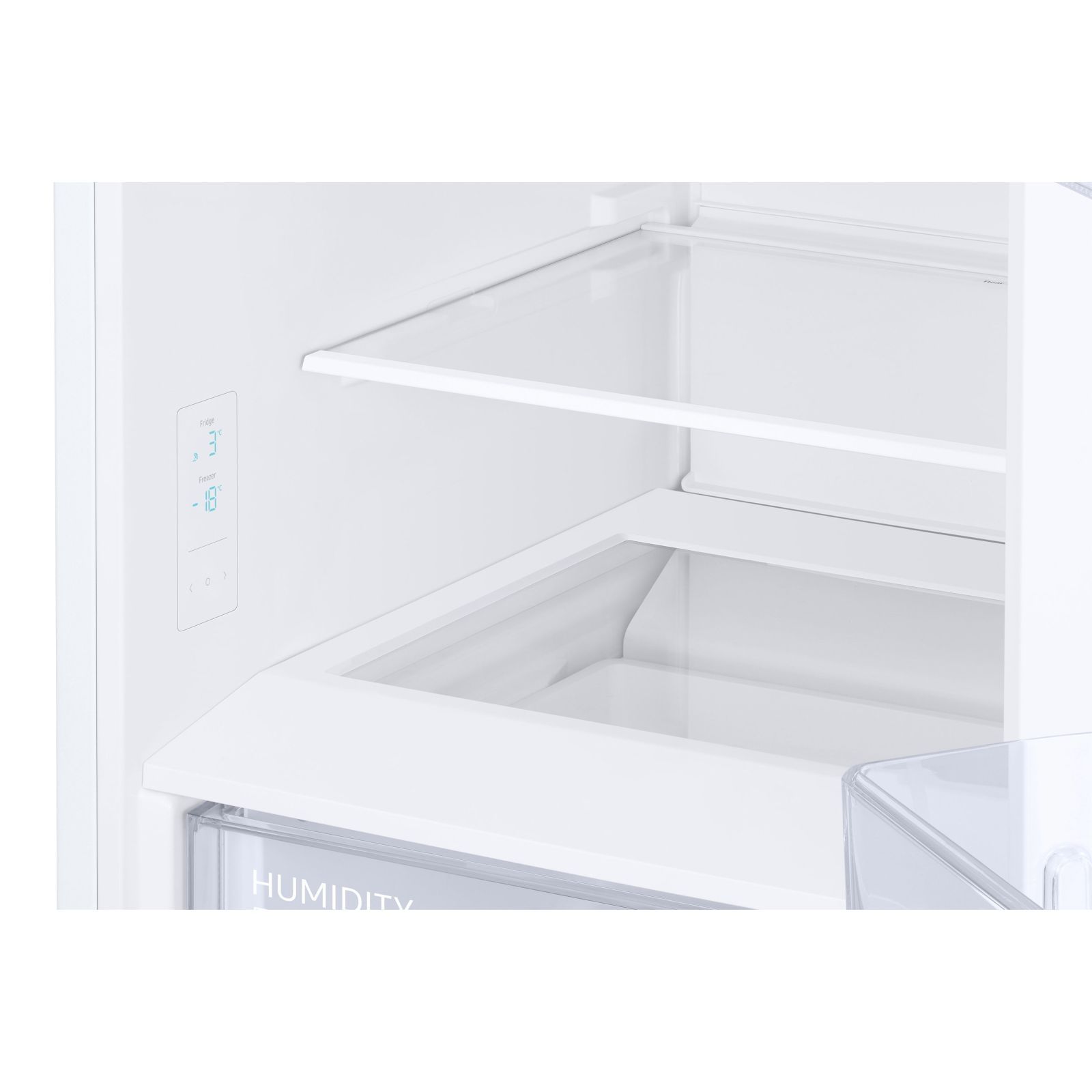 Холодильник із нижньою морозильною камерою Samsung знижує температуру за технологією No Frost, тому вигідно відрізняється від моделей без такої системи. No Frost забезпечує вентильоване охолодження, завдяки якому регулюється рівень вологості, відсутня конденсат, іній, льоду, сторонні запахи та суттєво продовжується термін служби холодильника.