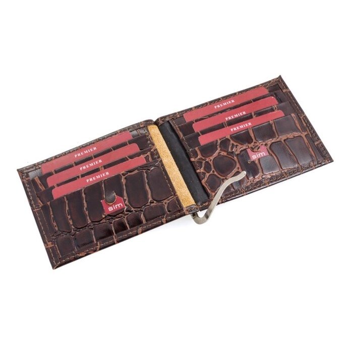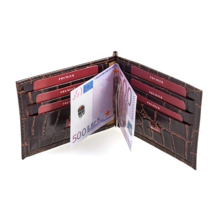 Зажим для купюр, 2 внутренних кармана, 6 карманов для кредитных карт, цвет коричневый