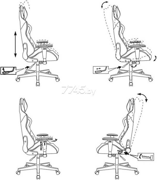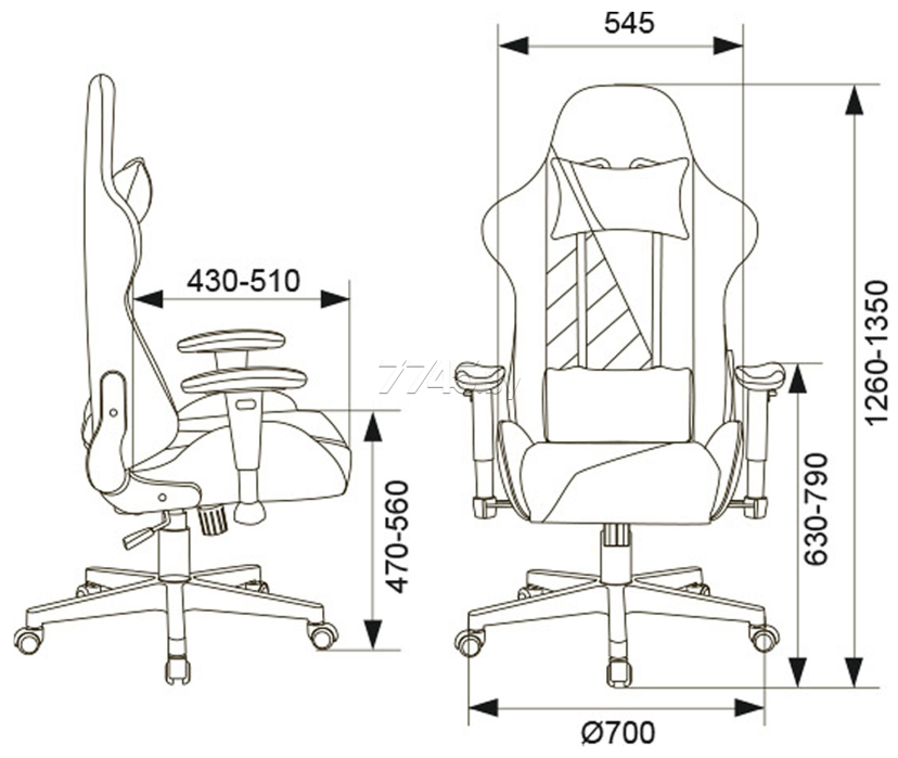 Высота подлокотника: 16 см. Диаметр колес: 50 мм. Диаметр крестовины: 70 см.
