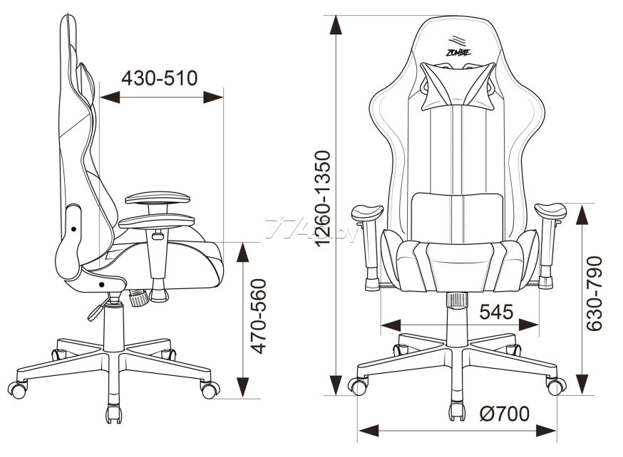 Высота подлокотника min: 16 см. Высота с подлокотниками: 63-79 см. Диаметр колес: 50 мм. Диаметр крестовины: 70 см.