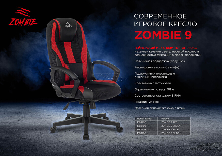 Кресло геймерское ZOMBIE 9 экокожа/ткань черный/красный оснащено механизмом качания Топ-ган люкс (DMSL) с регулировкой под вес и возможностью фиксации в любом положении. Высота сиденья настраивается под индивидуальные параметры пользователя. Мягкие сиденье и спинка обеспечат комфортную посадку и поддержку позвоночника. Подлокотники снабжены мягкими накладками. Обивка выполнена из экокожи и текстиля. Установлена пластиковая крестовина и пластиковые ролики. Ограничение по весу: 181 кг.