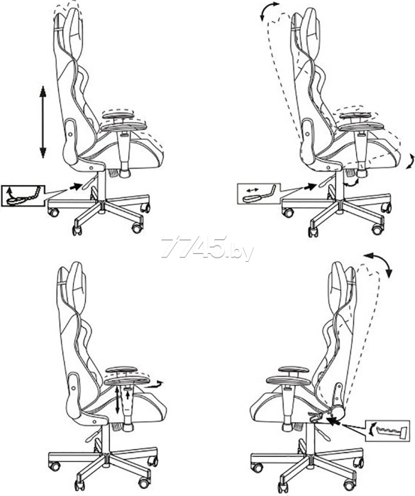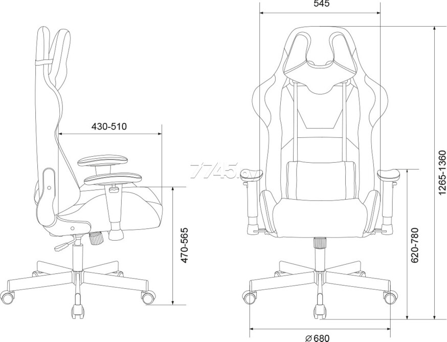 Высота подлокотника: 15 см. Диаметр колес: 50 мм. Диаметр крестовины: 68 см.