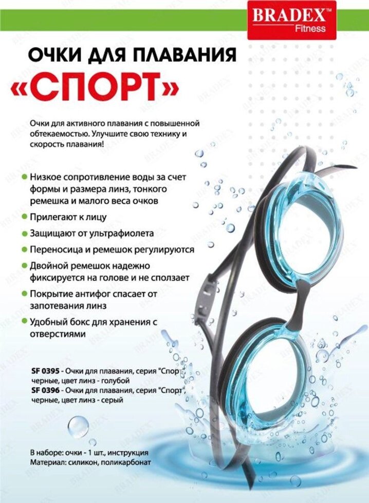 Очки для плавания, серия "Спорт", черные, цвет линзы - серый