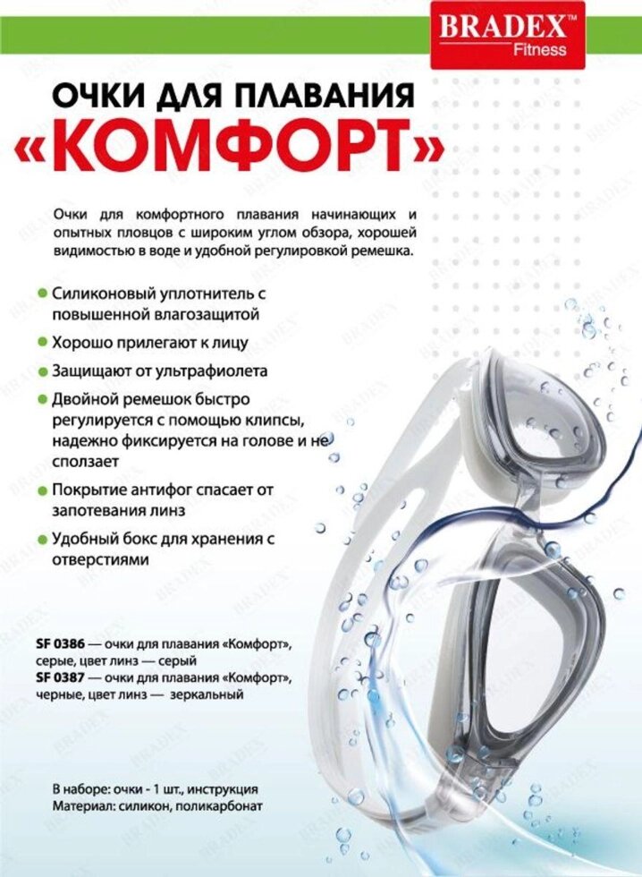 Очки для плавания, серия "Комфорт", черные, цвет линзы - зеркальный