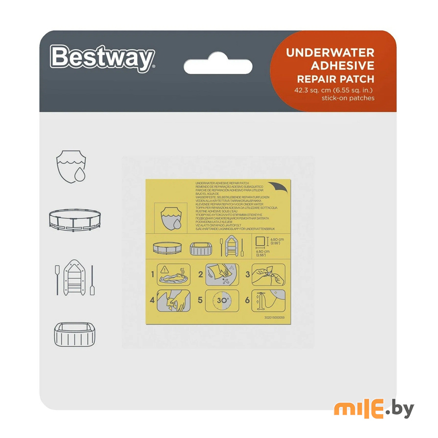 Влагостойкий ремонтный комплект Bestway для ремонта различных виниловых изделий: надувных матрасов, кроватей, лодок, подушек и других изделий.
