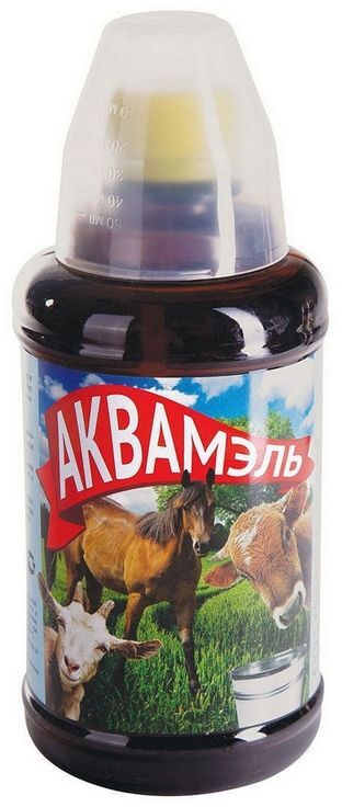 Коровы и лошади: 20 мл на голову в сутки (2 раза утром и вечером по 10 мл или 1 раз в сутки (утром) 20 мл). Разводить в воде для поения из расчета 10–20 мл «Аквамэли» на 5–15 л воды.