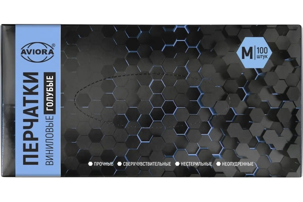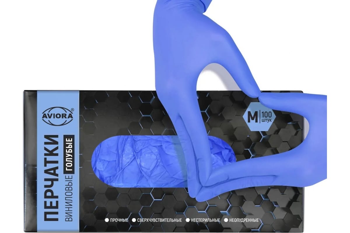 Виниловые неопудренные перчатки AVIORA голубые, размер M, 100 шт 402-916 изготовлены из поливинилхлорида (синтетического материал).