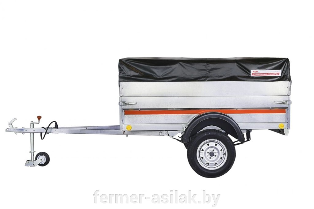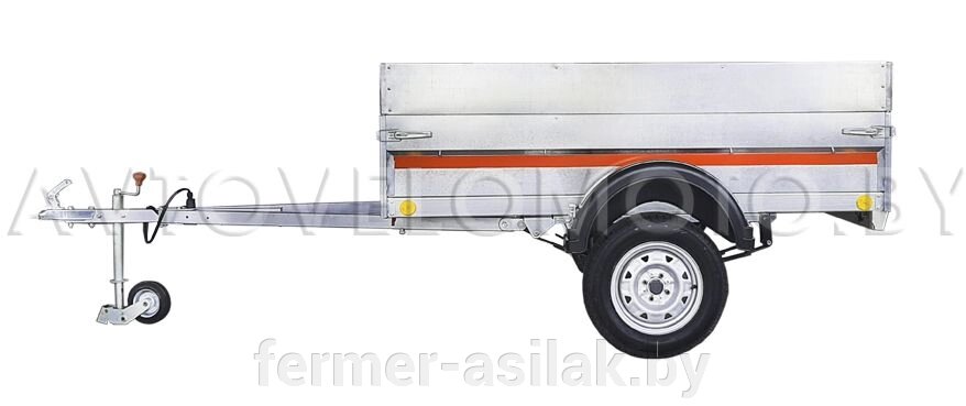 Прицеп «Крепыш2» с оцинкованными бортами бортами (надставные борта, удлинитель дышла, опорное колесо-автомат) без тента