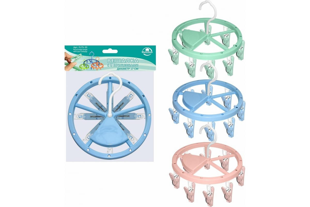 Вешалка МУЛЬТИДОМ с 8 прищепками круг диаметр 17 см 3 цвета FL75-33 предназначена для размещения одежды.