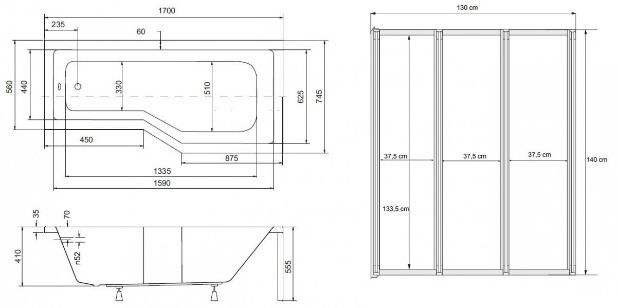 - Papildoma informacija Sienos matmenys 130×140 cm. Vonios išdėstymas – dešinė pusė.