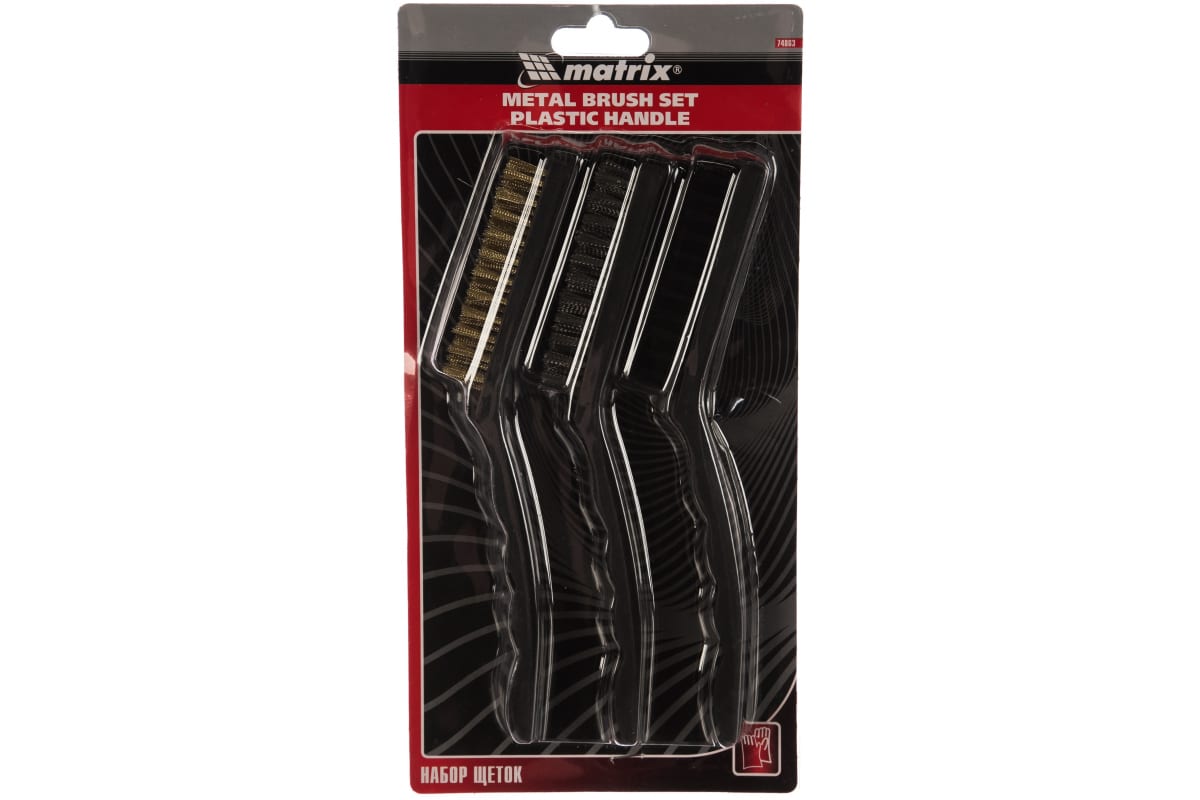 Набор больших металлических щеток 3 шт. MATRIX 74863 используется для грубой зачистки металлических поверхностей. Каждая щетка имеет стальную щетину в пластмассовых корпусах и удобные пластмассовые ручки.