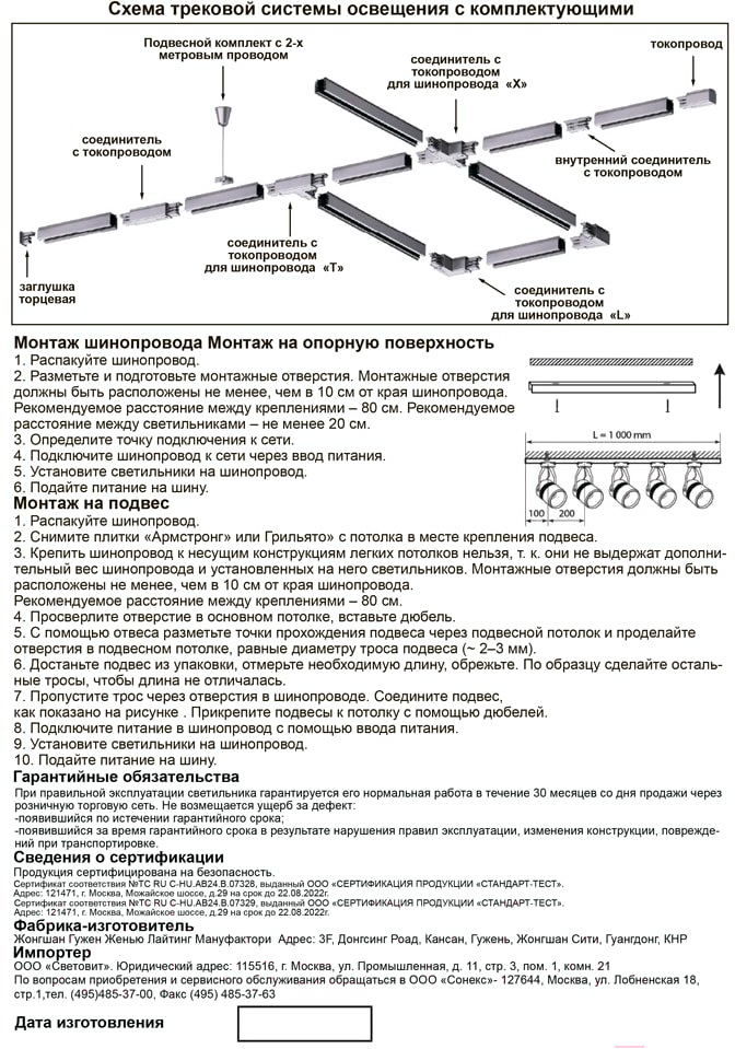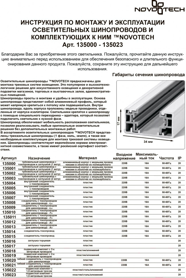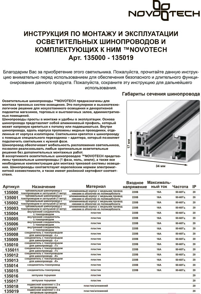 • Тип коннектор для шинопровода