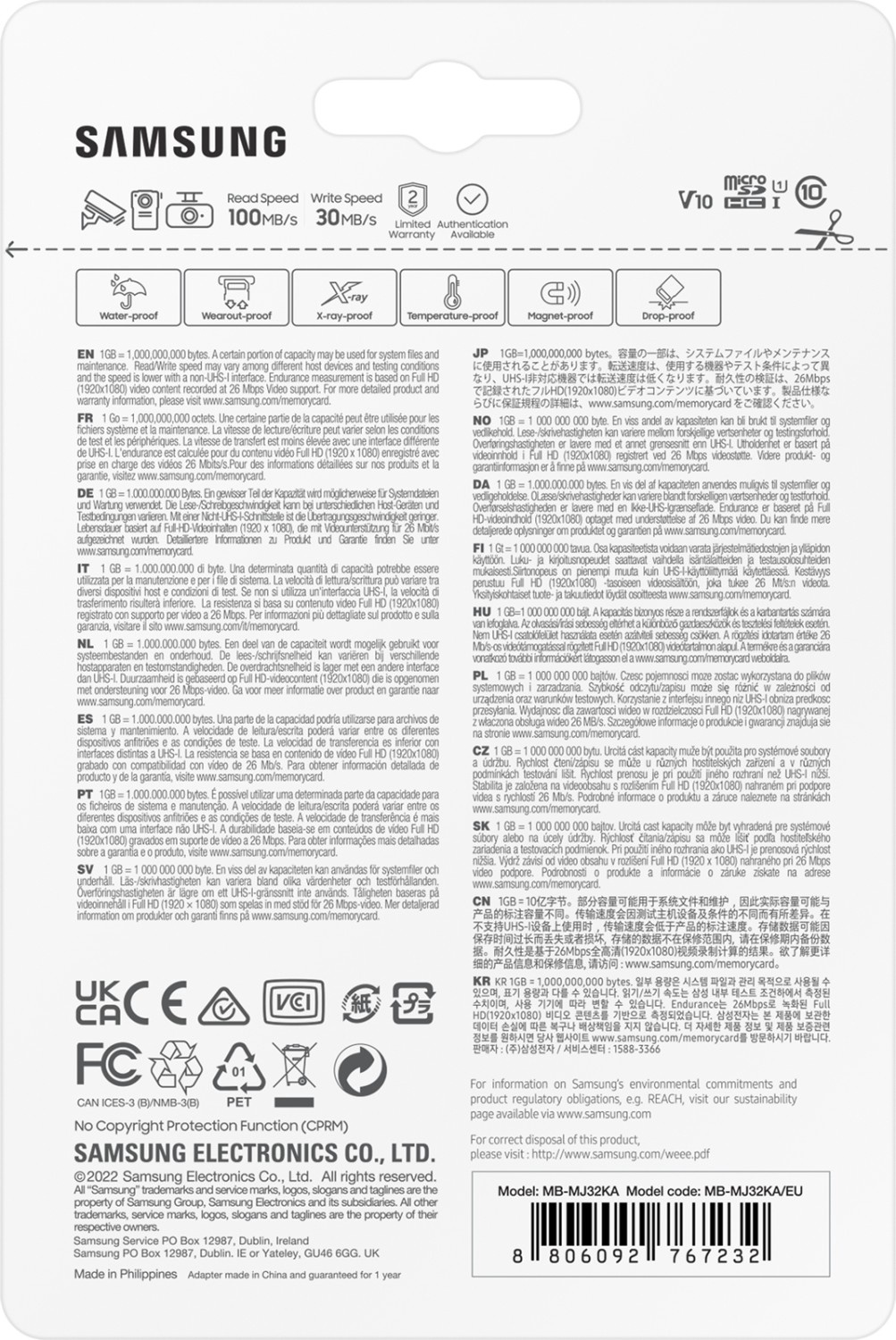 Объем памяти Чем больше объем, тем больше данных может быть записано на карте.32 GB