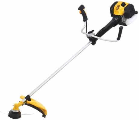 - Прочие особенности и свойства В комплект входит набор оснастки: полуавтоматическая катушка с системой Easy Load, трехлопастной нож и пильный диск, что позволяет обрабатывать газон, скашивать высокую траву, мелкий кустарник и побеги деревьев. Неразъемная штанга не имеет уязвимых соединений, толщина стенок трубы составляет 1,5 мм, а коннектор выполнен из алюминия, что значительно увеличивает ее прочность. Легкий запуск обеспечивает система Easy Start и праймер. Стартер имеет высокий ресурс, т.к. изготовлен из ударопрочного полиамида. Комфортную работу обеспечивает профессиональная антивибрационная система. Триммер оснащен сцеплением усиленной конструкции, что повышает его надежность: установлены высокопрочные чугунные колодки, удлиненная пружина, фрикционные накладки толщиной 3,5 мм. Цилиндр двигателя покрыт хромом и хонингован, что повышает ресурс поршневой группы. Шлицы валов имеют высокую износостойкость, т.к. закаливаются током до твердости 50 HRC. Триммер оснащен кожухом на режущей части, что обеспечивает защиту пользователя. Рукоятка U-образного типа с обрезиненными ручками не проскальзывает в руке, что обеспечивает надежный хват. Все элементы управления находятся на рукоятке под правой рукой, что обеспечивает комфортную работу, а клавиша выключения зажигания находится под большим пальцем, что позволяет моментально остановить работу при необходимости. Легко производить техническое обслуживание фильтра, т.к. к нему обеспечен быстрый доступ без ключа. Блокировка кнопки пуска обеспечивает безопасность эксплуатации, исключая случайный запуск. Встроенный круиз-контроль позволяет регулировать скорость оборотов для подбора оптимального режима работы. Установлена усиленная полуавтоматическая катушка с системой Easy Load: для заправки лески не нужно разбирать катушку, а для ее обновления достаточно слегка ударить шпулей о землю. Двухплечевой ремень с защитой бедра облегчает работу, позволяя снизить нагрузку на руки и равномерно распределить вес по спине. Триммер поставляется вместе с канистрой для смешивания топлива и набором инструментов для обслуживания.