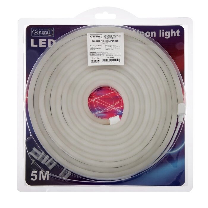 Гибкий неон general, 8x18 мм, 5 м, LED/м-72-SMD5050-12V, IP67, RGB