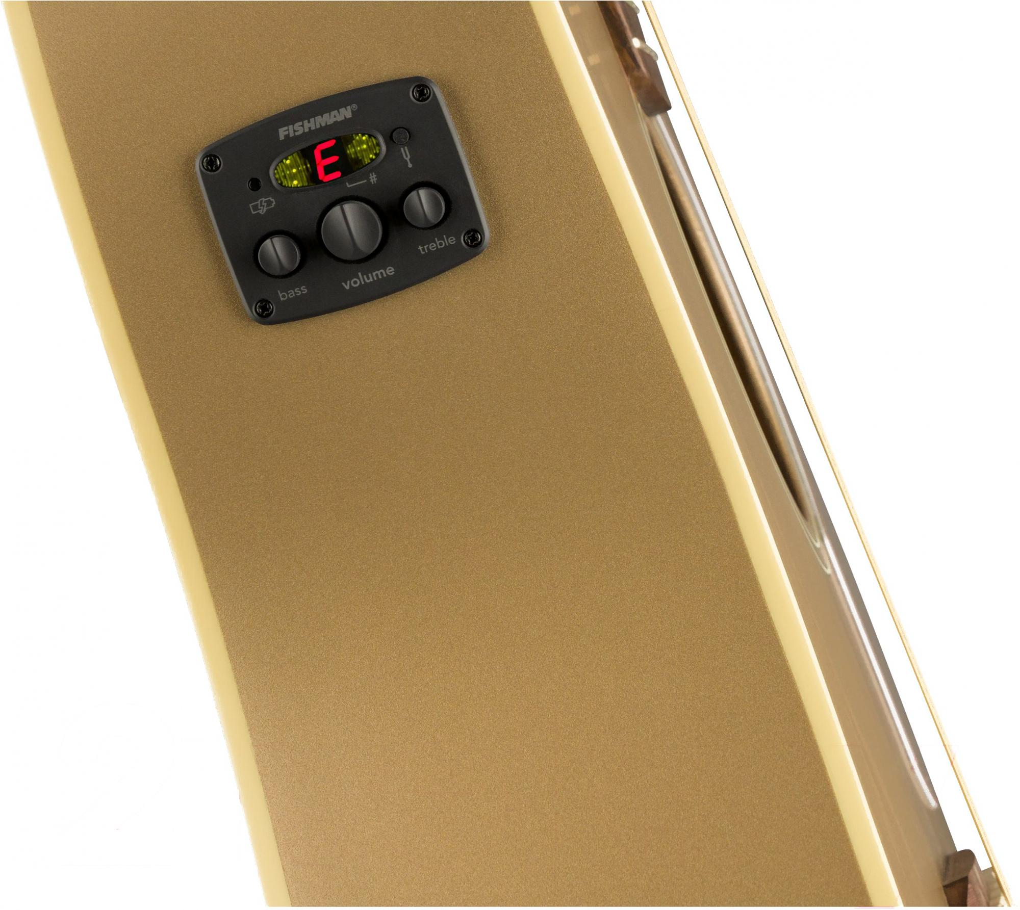 • Система предусилителя Fishman, темброблок оснащен регулятором громкости, двухполосным эквалайзером (Bass, Treble), тюнером с дисплеем и индикатором низкого уровня заряда батареи