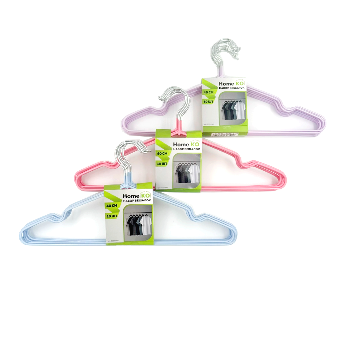 Набор металлических вешалок-плечиков с анти-скользящим покрытием, выемками и перекладиной для удобного и компактного хранения комплектов одежды. Занимает совсем немного места, организовывает зону гардероба и освобождает пространство. Отлично подойдет для легких вещей, таких как футболки, блузки, платья. Длина 40 см. Перекладина для брюк и юбок и плечики имеют специальное противоскользящее покрытие (ПВХ), благодаря которому гладкие вещи не соскальзывают с вешалки. На специальные выемки можно повесить одежду с бретелями. В наборе 10 шт.