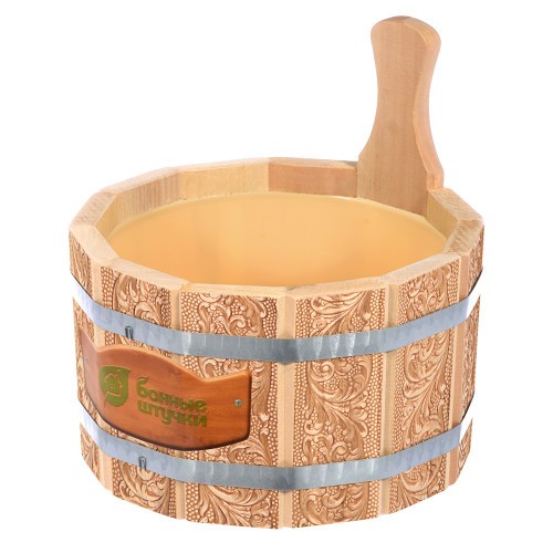 Описание: Бондарные изделия с узорами - идеальное качество, имитирующее ручную резьбу. Одинаковые симметричные рисунки без сколов, заусениц и дефектов создают эффект коллекционного раритета.Предназначение: Для использования в бане и сауне.Материал: Липа, полипропилен.Срок годности: Не ограничен.Условия хранения: Хранить в сухих помещениях, вдали от нагревательных предметов (в магазинах, на складах и тд).