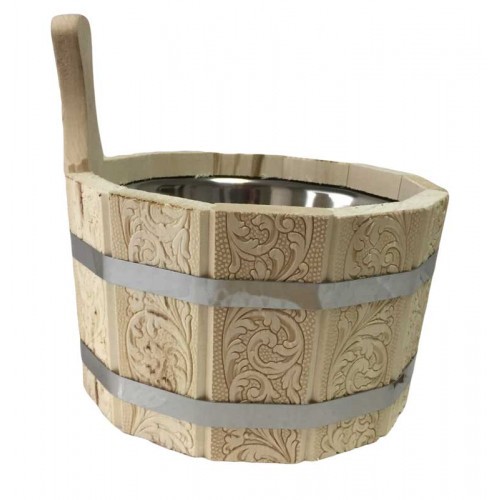 Ушат "шайка" 3л с нержавеющей вставкой (ЛТ-10) с тиснением "Цветы" - предназначена для использования в бане. За счёт оригинального орнамента выгодно выделяется из всего многообразия банных аксессуаров. Возможен орнамент "Под старину".