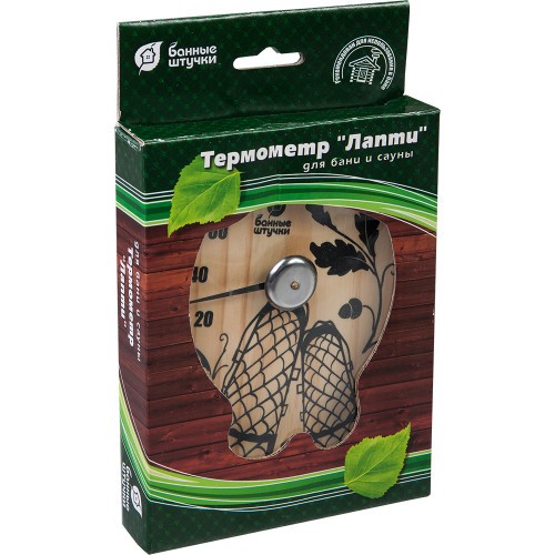 Термометр "Лапти" для бани и сауны - предназначен для измерения температуры в парной. Оригинальный вид термометра украсит ваш интерьер.