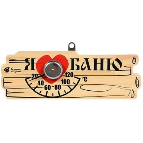 Термометр "Я люблю баню" для бани и сауны - для измерения температуры в парном помещении.Размер: 17 х 6 х 2,5 смМатериал: дерево, металл
