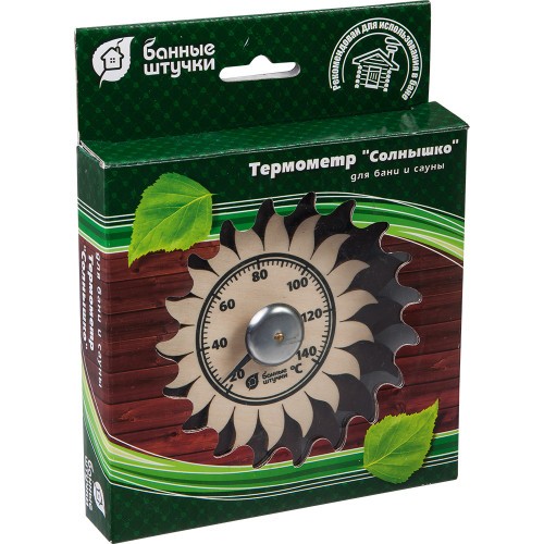Термометр "Солнышко" для бани и сауны - для измерения температуры в парном помещении. Размер: 13х13 см Материал: сосна, механизм - металл