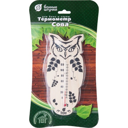 Термометр "Сова" для бани и сауны - для измерения температуры в парном помещении. Размер: 16,6х7,5 см Материал: дерево, стекло