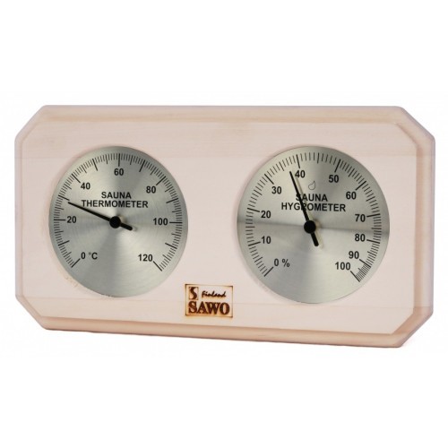 Термогигрометр 221-THА от компании Sawo имеет оригинальную прямоугольную форму с фигурными углами. В широкой рамке из древесины осины находится два круглых окошка. Под стеклом каждого окошка расположен графичный циферблат. Один из них - это гигрометр, который с точностью измерит уровень влажности в парной, другой - термометр, который сообщит о температуре воздуха. Данный прибор прекрасно подойдёт для использования в любом парильном помещении. В нашем интернет-магазине представлен широкий ассортимент измерительных приборов в корпусах из разных видов древесины. Вы можете купить по привлекательной цене модель 221-THА или присмотреться к другим вариантам.Качественные банные процедуры требуют соблюдения ряда правил. Чтобы проведённое в парной время оказало благоприятный эффект на здоровье и самочувствие, необходимо тщательно соблюдать температурный режим парения и режим влажности. Так например, если вы отдыхаете в условиях классической финской сауны, влажность воздуха не должна превышать 10-15% при температуре до 120 градусов. Русская баня - это температура воздуха 60-90 градусов и влажность в диапазоне от 45% до 65%. Хамам отличается густым паром, создающим 90-100% влажности и температурой воздуха до 45 градусов. Именно такие условия считаются оптимальными.Для контроля за режимом парения компания Sawo создала целую линейку измерительных приборов. Высокое качество гарантирует надёжность и точность измерений. Среди большого количества форм и размеров каждый сможет подобрать для себя подходящий аксессуар.Размеры (Ш х Г х В), мм 255 х 30 х 140