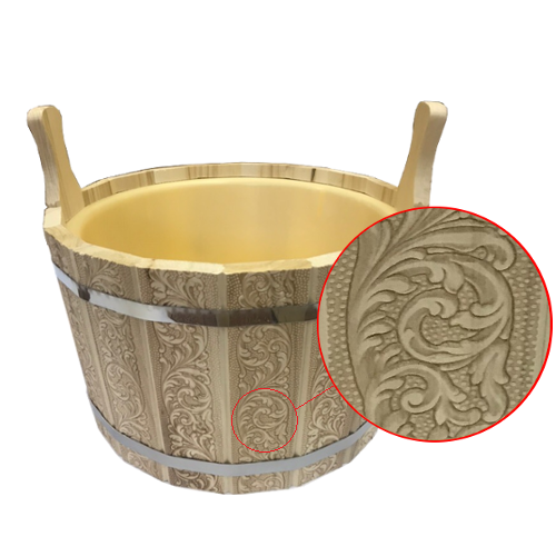 Шайка 8л с пластиковой вкладкой (ПЛ-12) - сделана из натурального дерева и предназначена для использования в бане. Пластиковая вставка продлит срок службы изделия. Оригинальное тиснение разнообразит монотонность Ваших аксессуаров. Возможен вариант орнамента "Под старину".