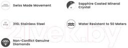 • Цвет циферблата бирюзовый, перламутровый, фиолетовый