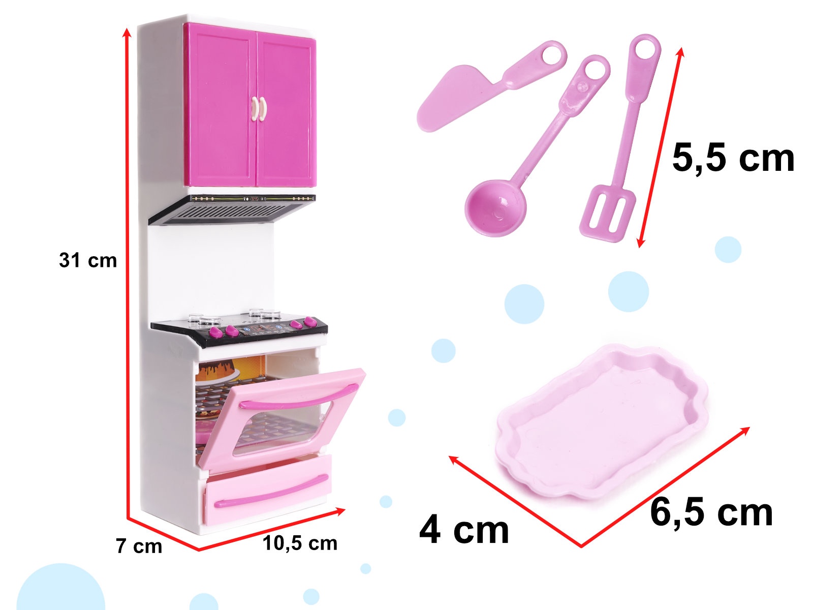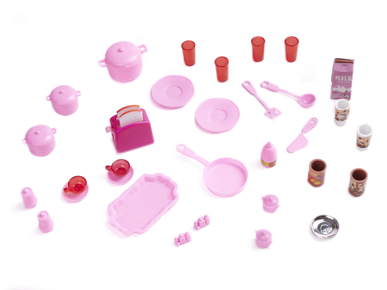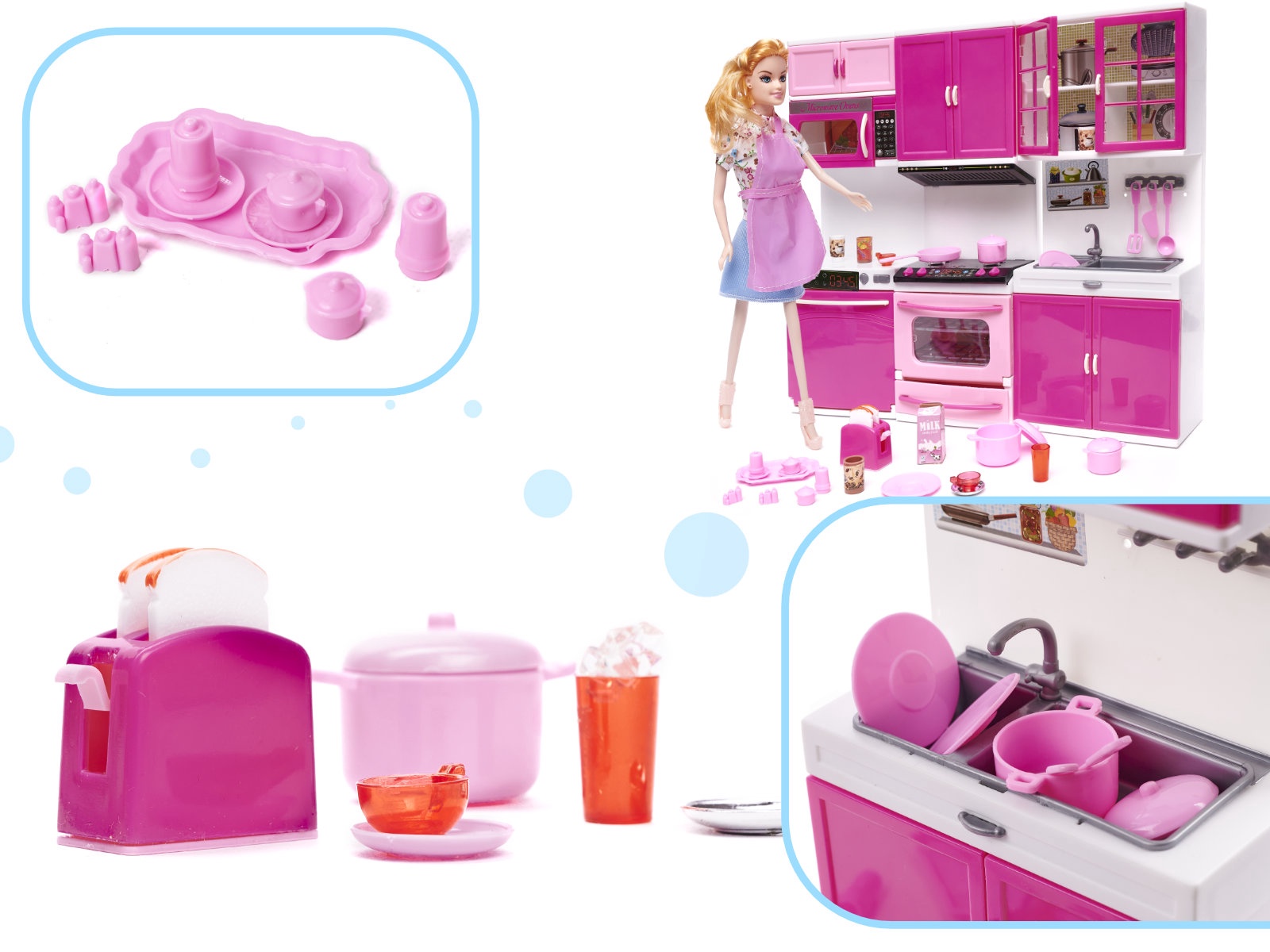 • Komplekte Lėlė, virtuvės įranga, priedai