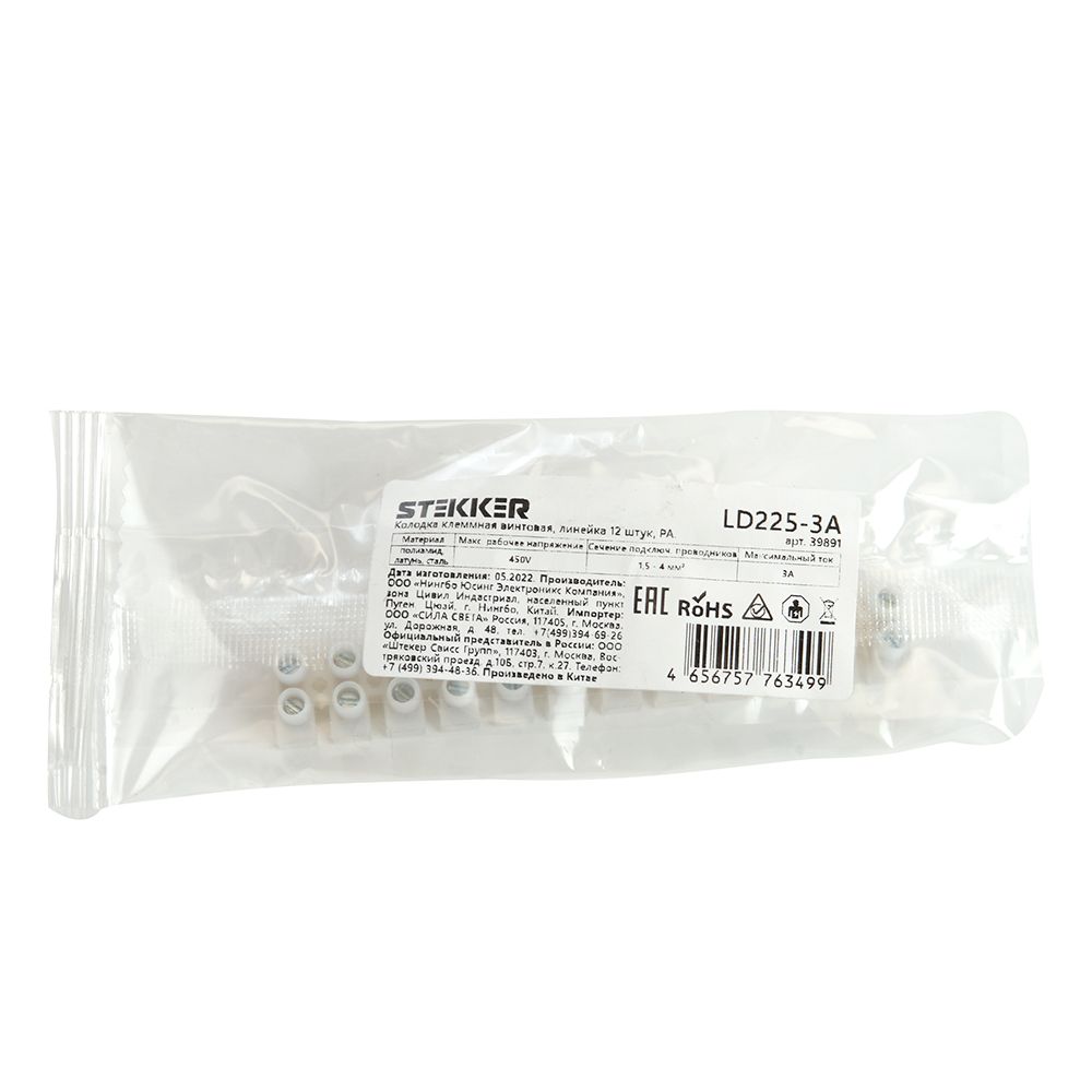 Колодка клеммная винтовая STEKKER, линейка 12 штук, полиамид, LD225-3A DIY 39891