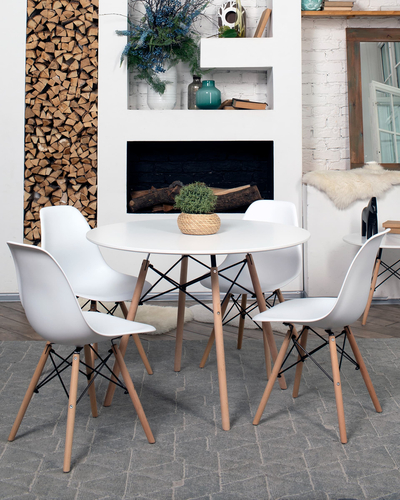 Обеденная группа стол DSW D100, 4 стула Style DSW белый