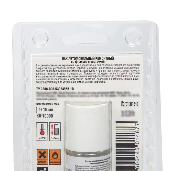 Лак Kudo автомобильный ремонтный с кисточкой, 15 мл