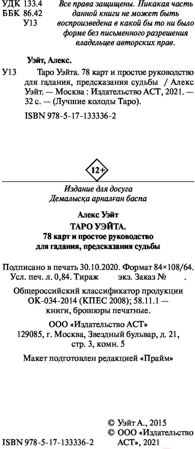 Книга АСТ Таро Уэйта. 78 карт. Простое руководство для гадания (Уэйт А.)
